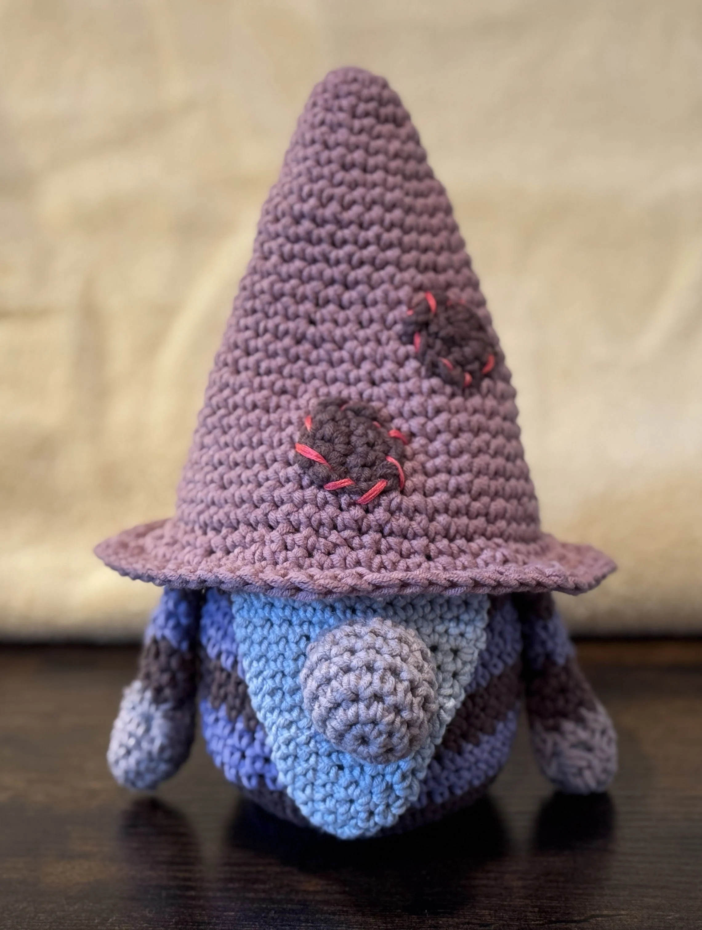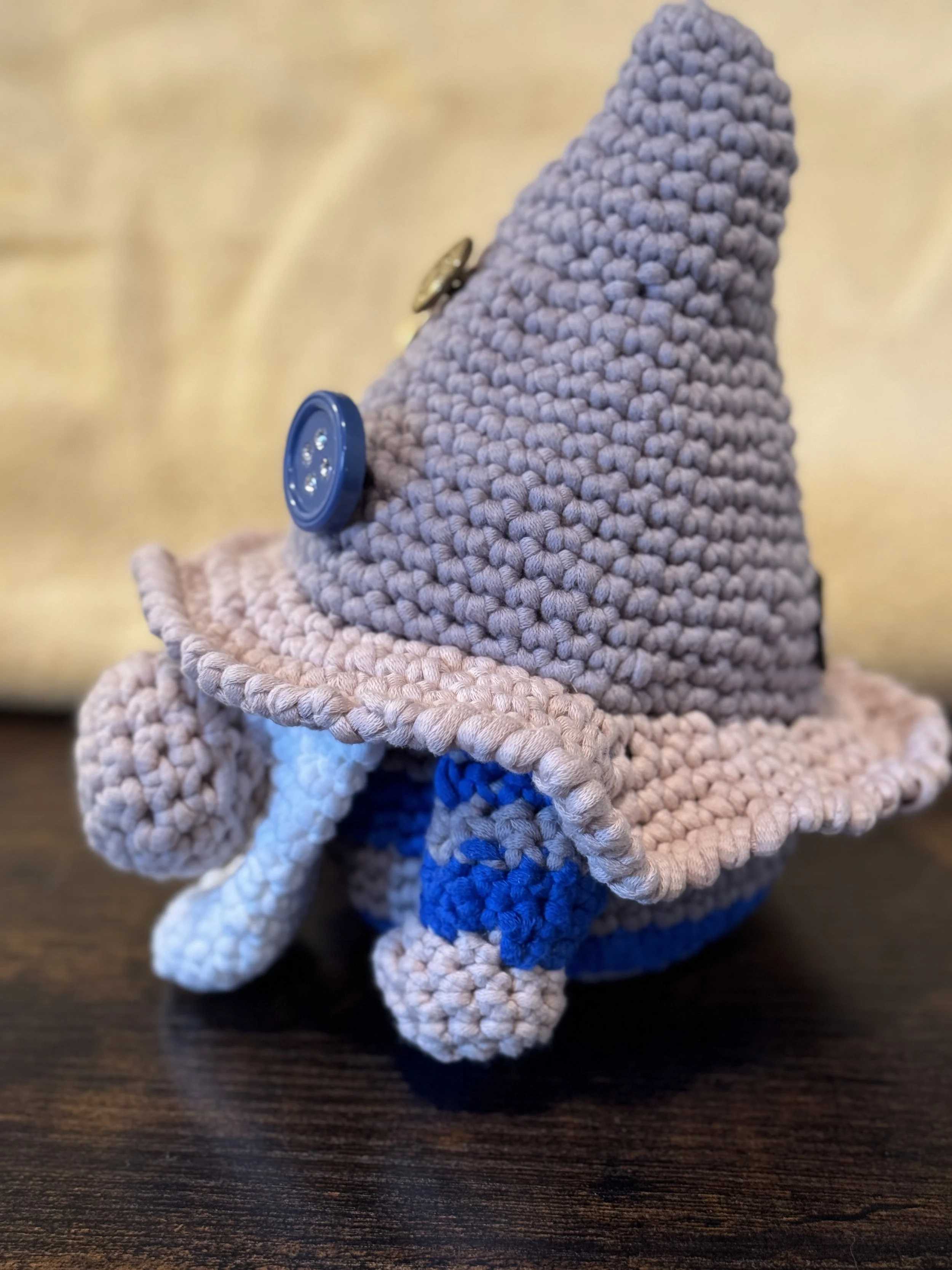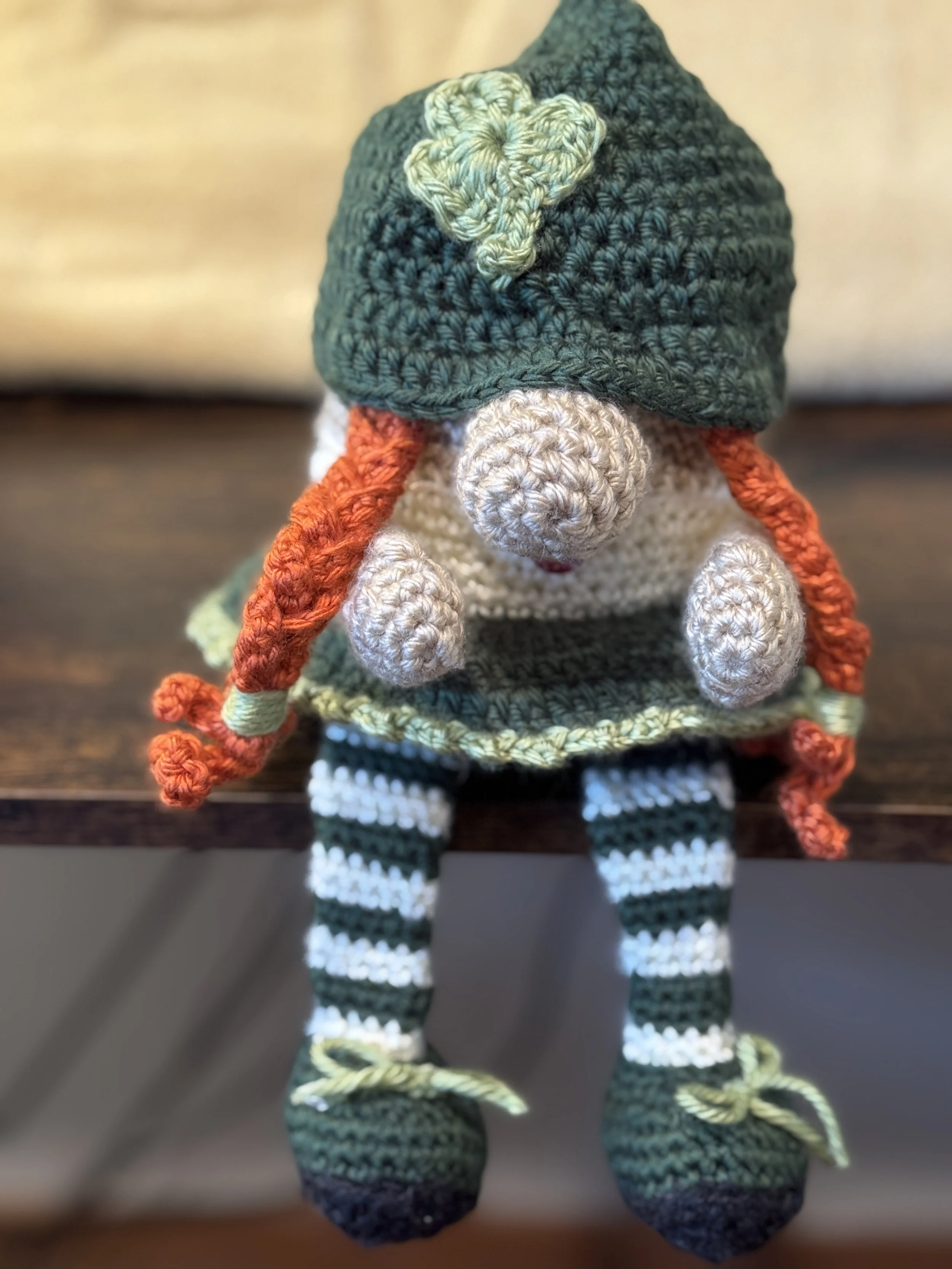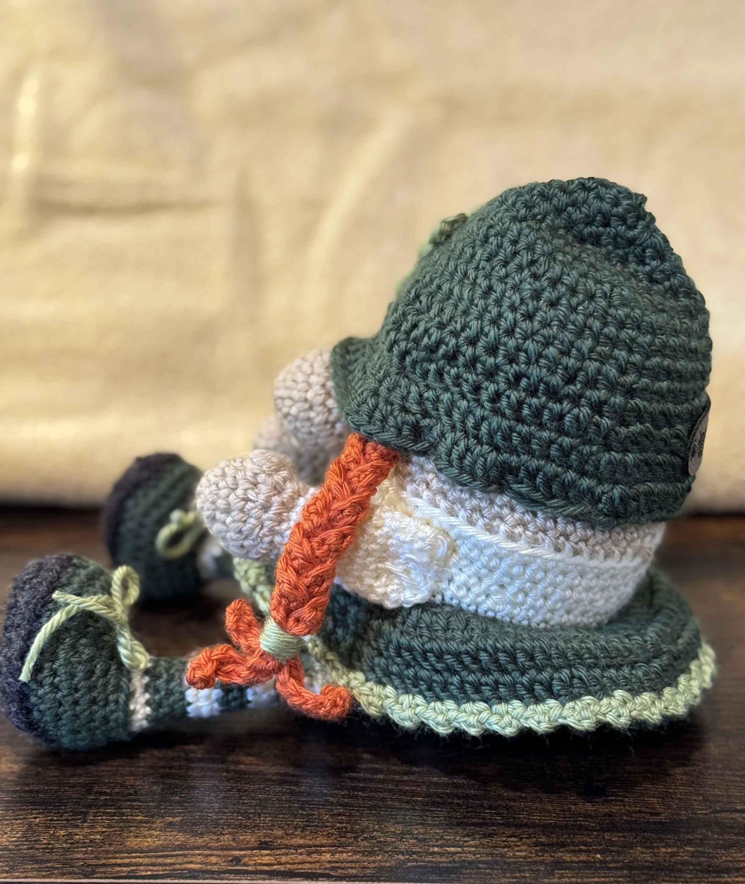This cute little hand crocheted gnome has a weighted base so he will stay where you place him. Colors vary!