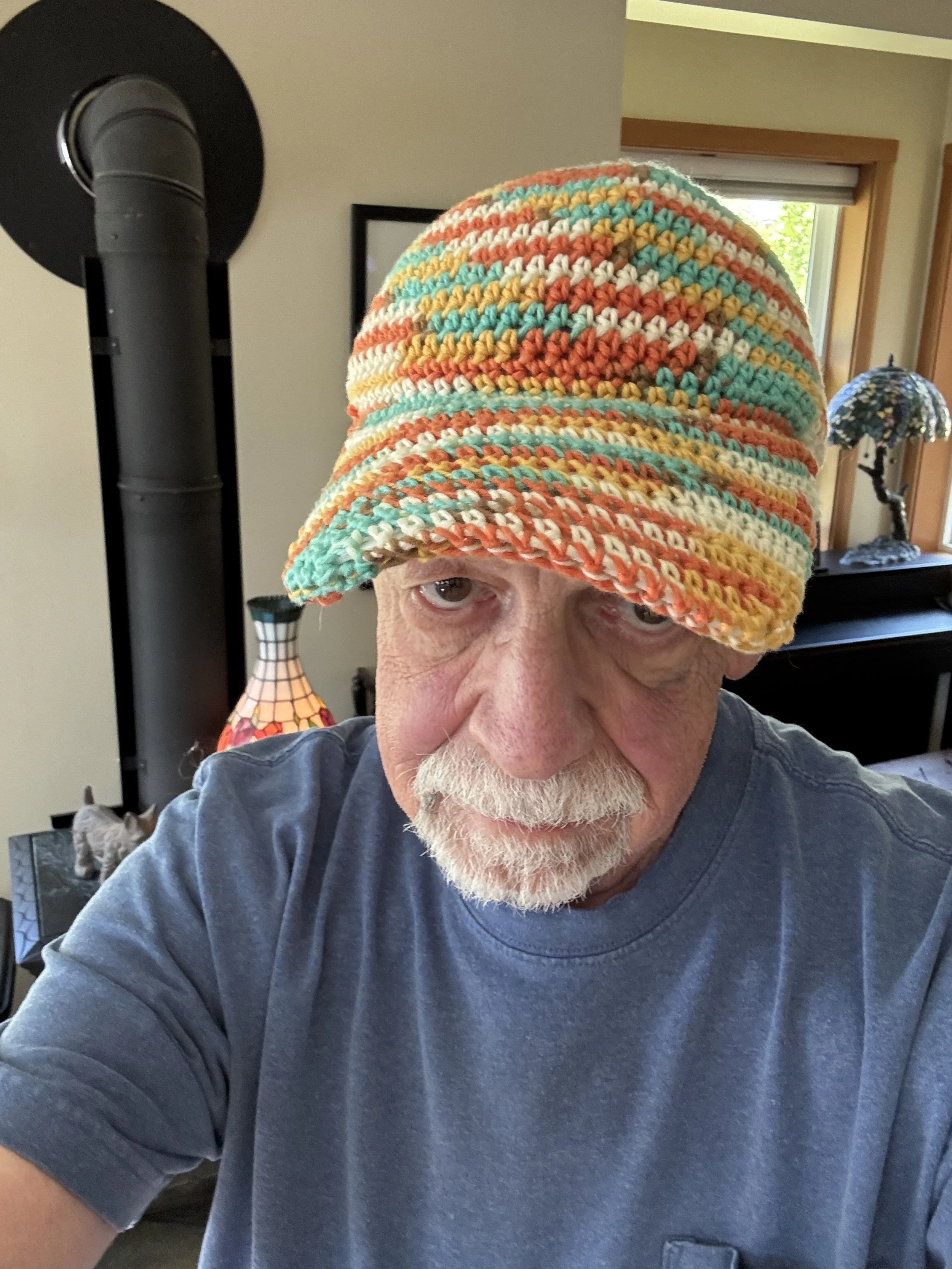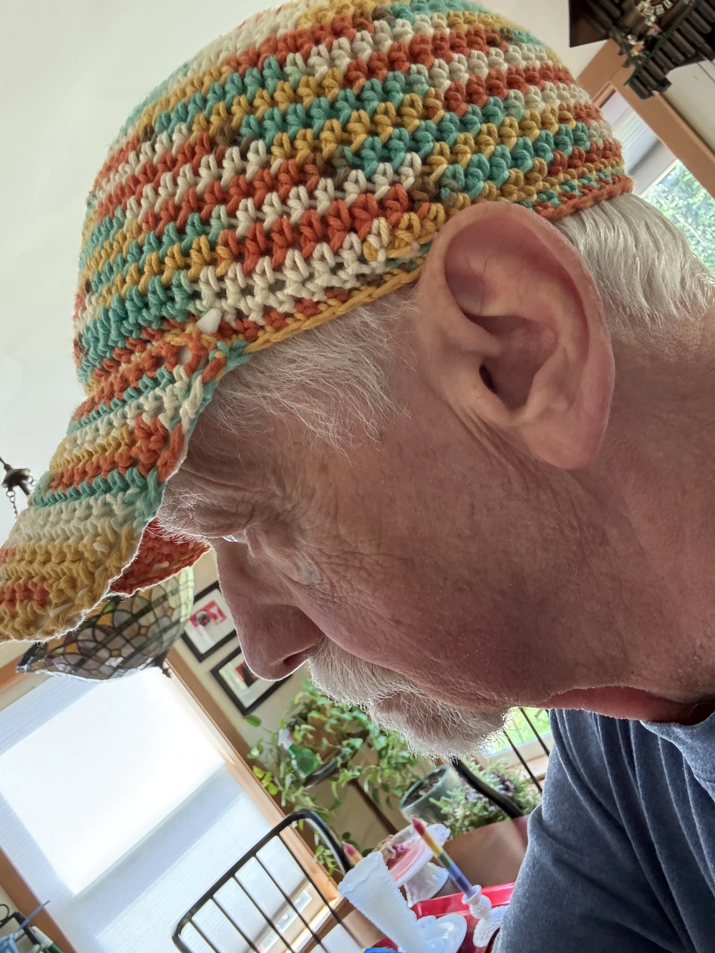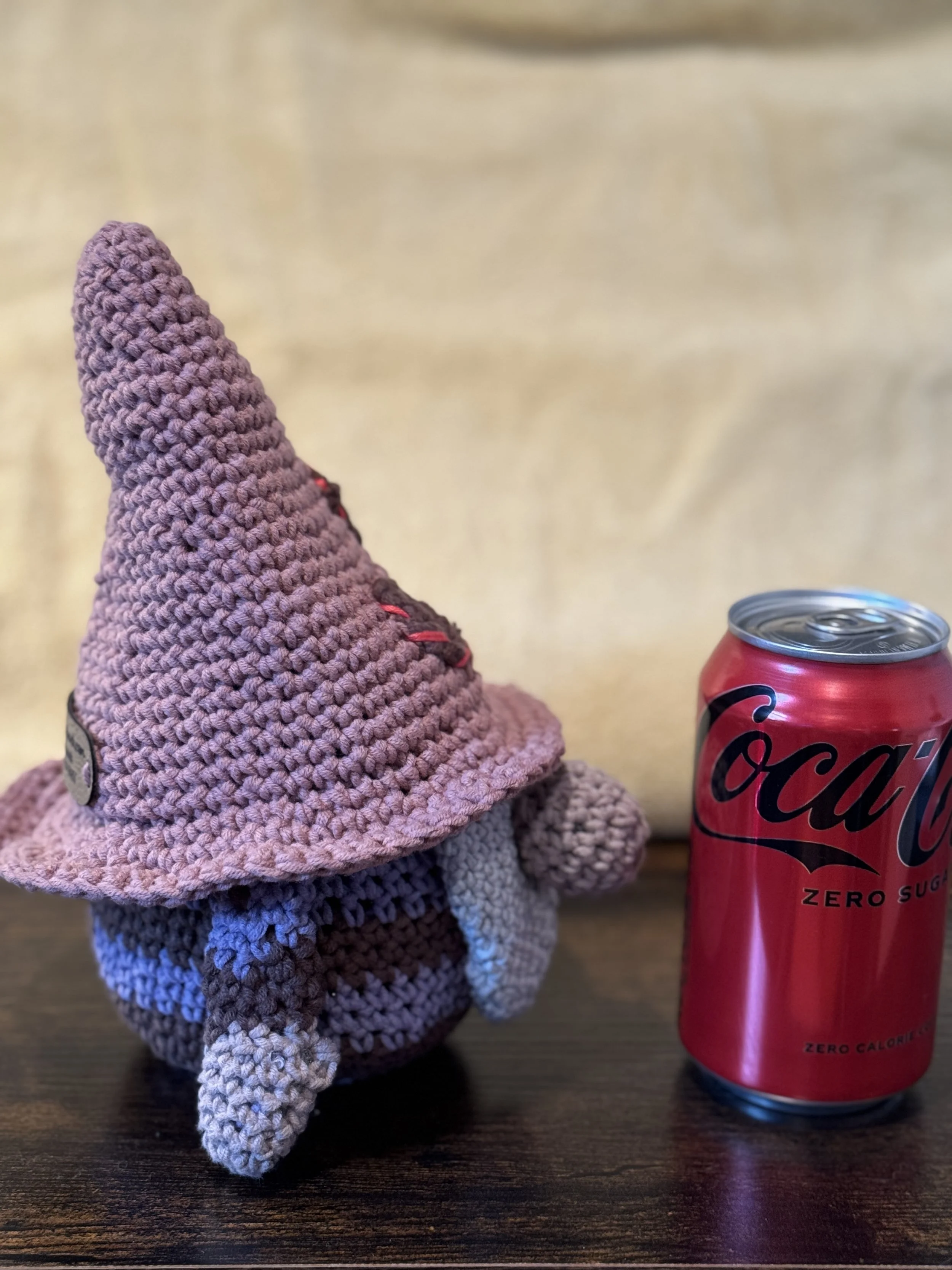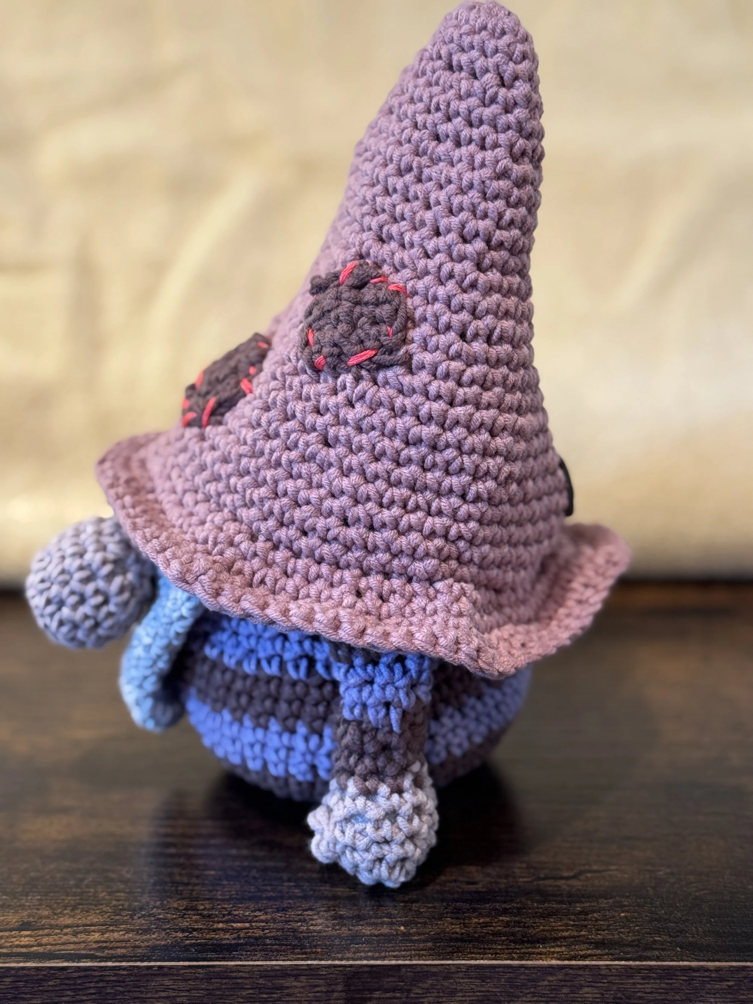 This cute little hand crocheted gnome has a weighted base so he will stay where you place him. Colors vary!